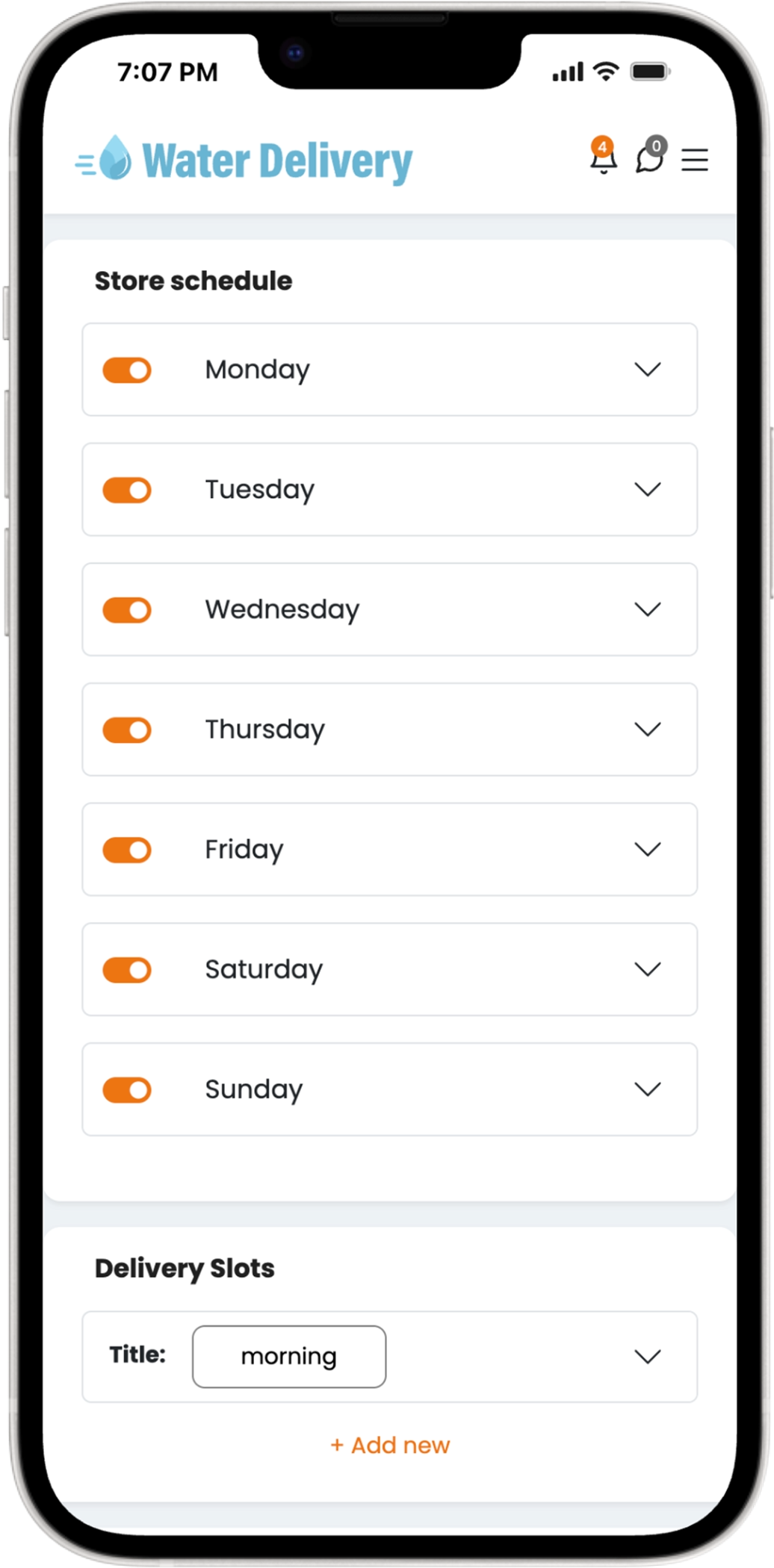 - Operational tooling for delivery areas, schedules, and customer management